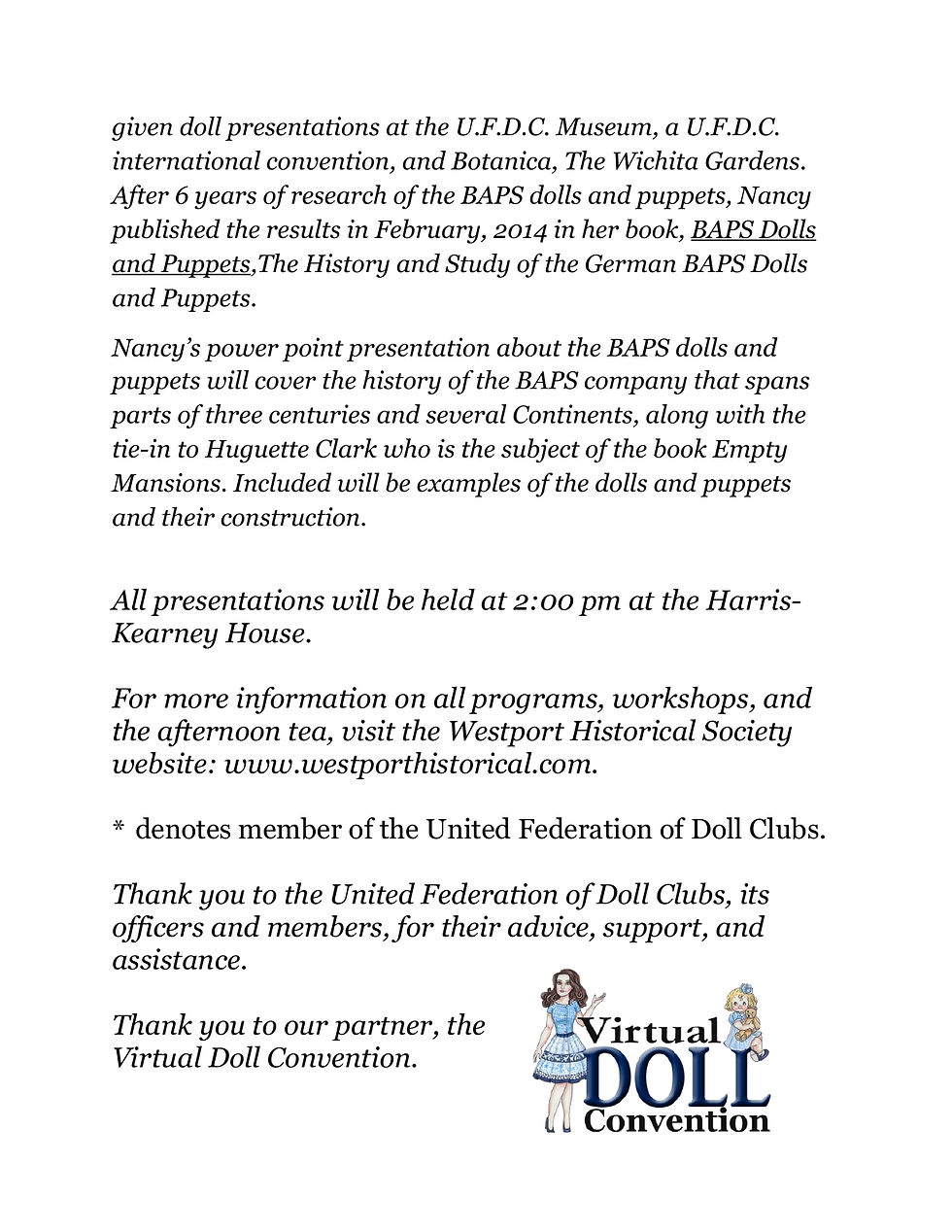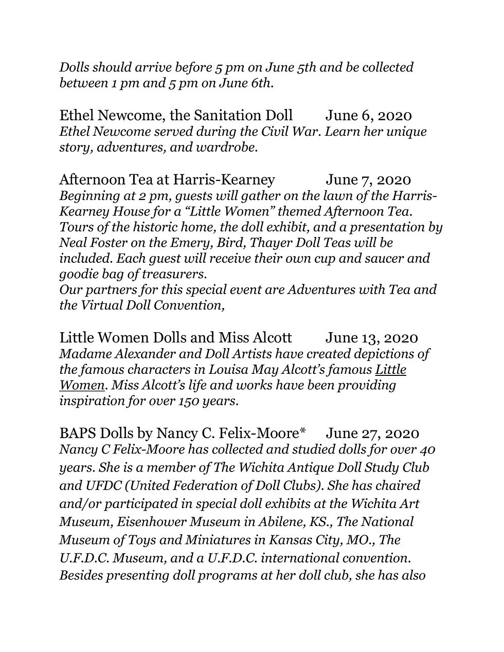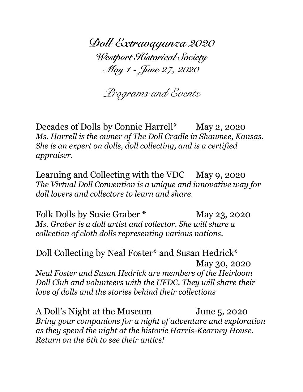 Westport Historical SocietyMar 17, 20201 min readDoll WorkshopUpdated: Aug 4, 2020Mark your calendars now, pending the situation of the pandemic in May! Check the Society's Facebook page for the latest updates!